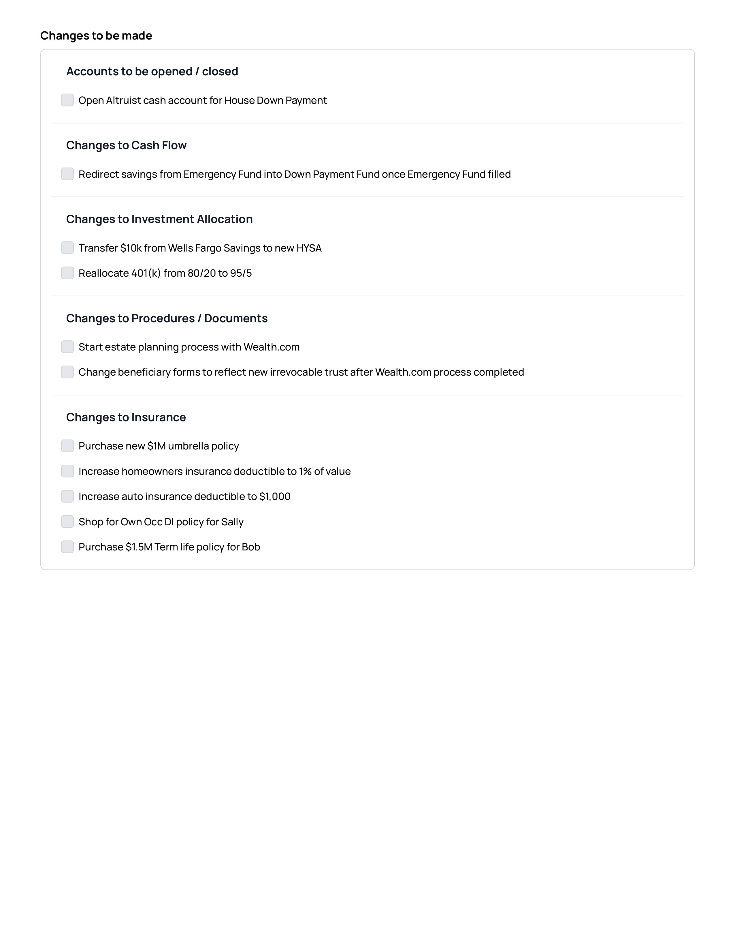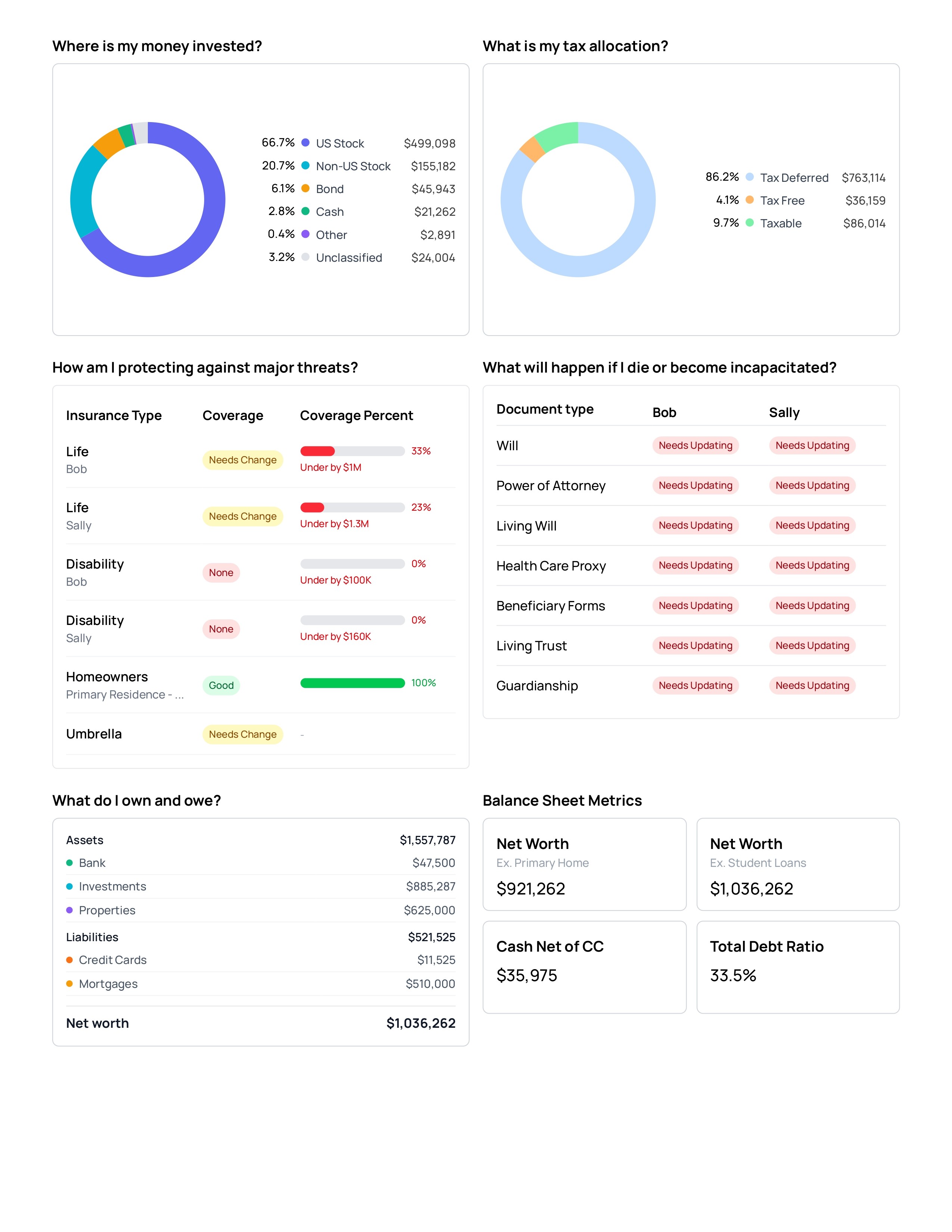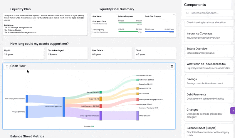 Cover liquidity, retirement, taxes, insurance, estate, investments, and more — without switching between tools.